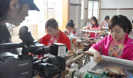 牡丹蘇繡軟裱畫(huà),帶軸天地桿手工刺繡畫(huà),國(guó)際友人喜愛(ài)禮物 |